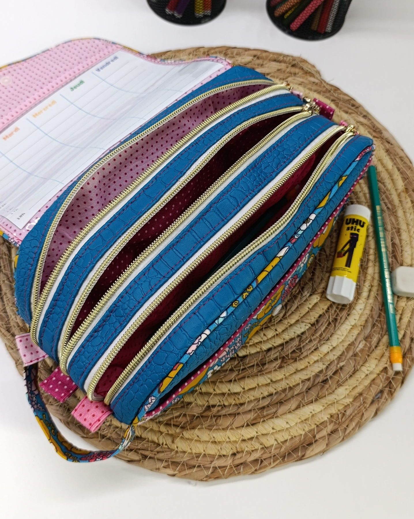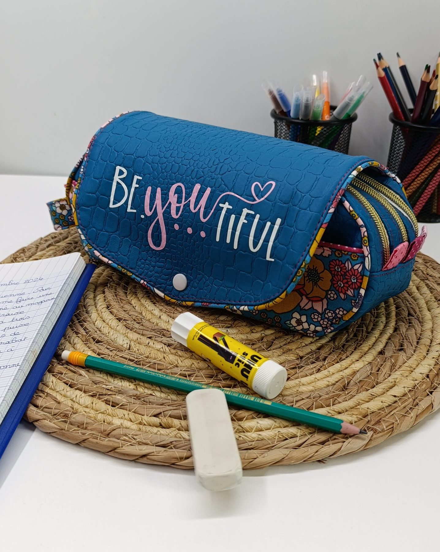 Tu cherches un projet couture à la fois utile et créatif ? Avec ses lignes modernes et son rabat pratique, cette trousse deviendra vite un indispensable pour organiser tes affaires. Idéale pour ranger maquillage, matériel scolaire ou petits objets, cette trousse à rabat personnalisable propose deux ou trois compartiments pour s’adapter à tes besoins.