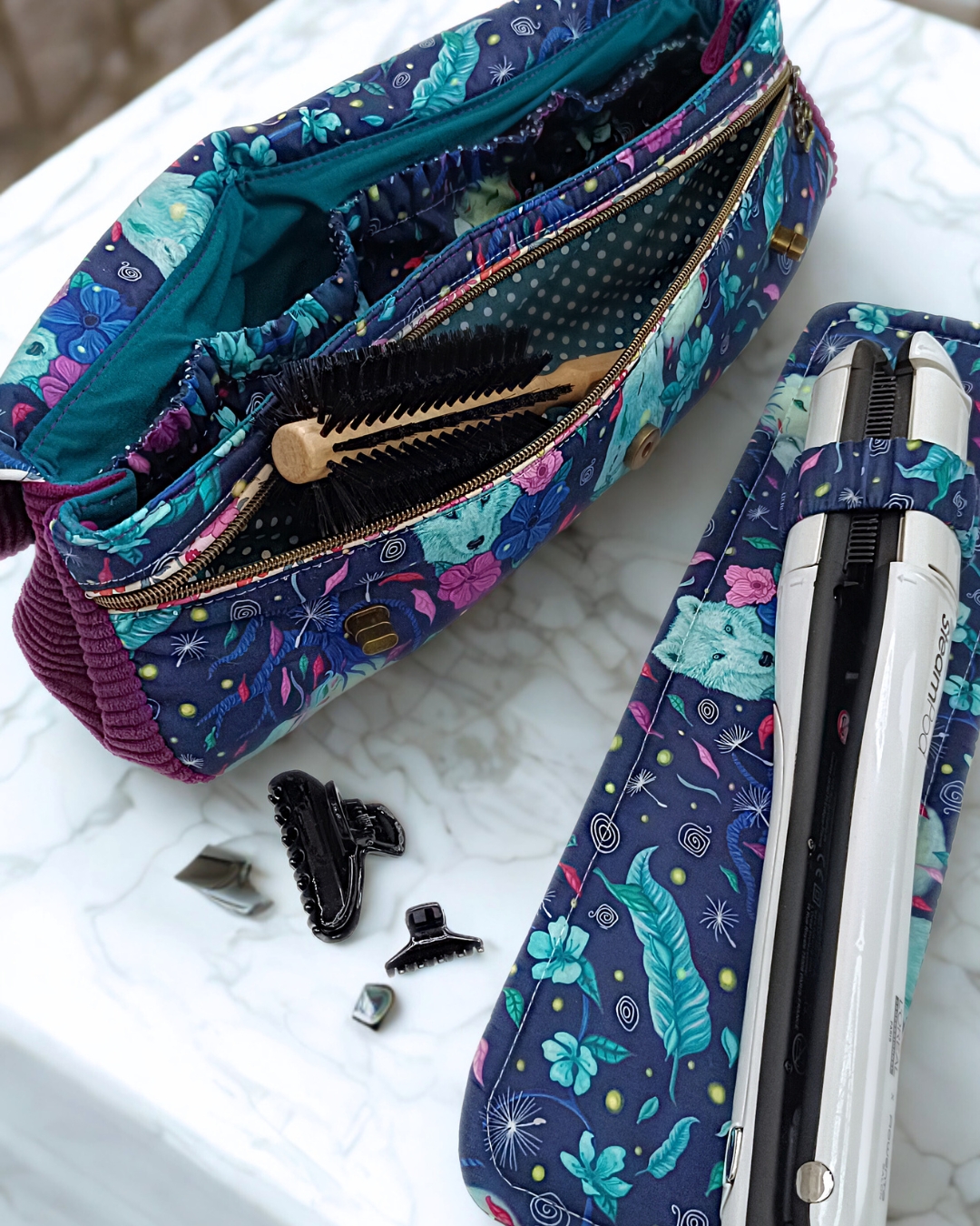 Betty, quel joli vanity ! Un régal à coudre, déclinable à souhait, de la taille rikiki trop choupi à glisser dans son sac à main à la maxi taille pour emporter sa salle de bain. Comme d’habitude, un tuto mijoté aux petits oignons, très bien illustré, très explicite et les pièces qui s’assemblent bien et tombent bien. Pas de mauvaise surprise. Les parons de Stella Berthe sont faits avec beaucoup de rigueur, sont très bien conçus, tu ne peux que te faire plaisir !